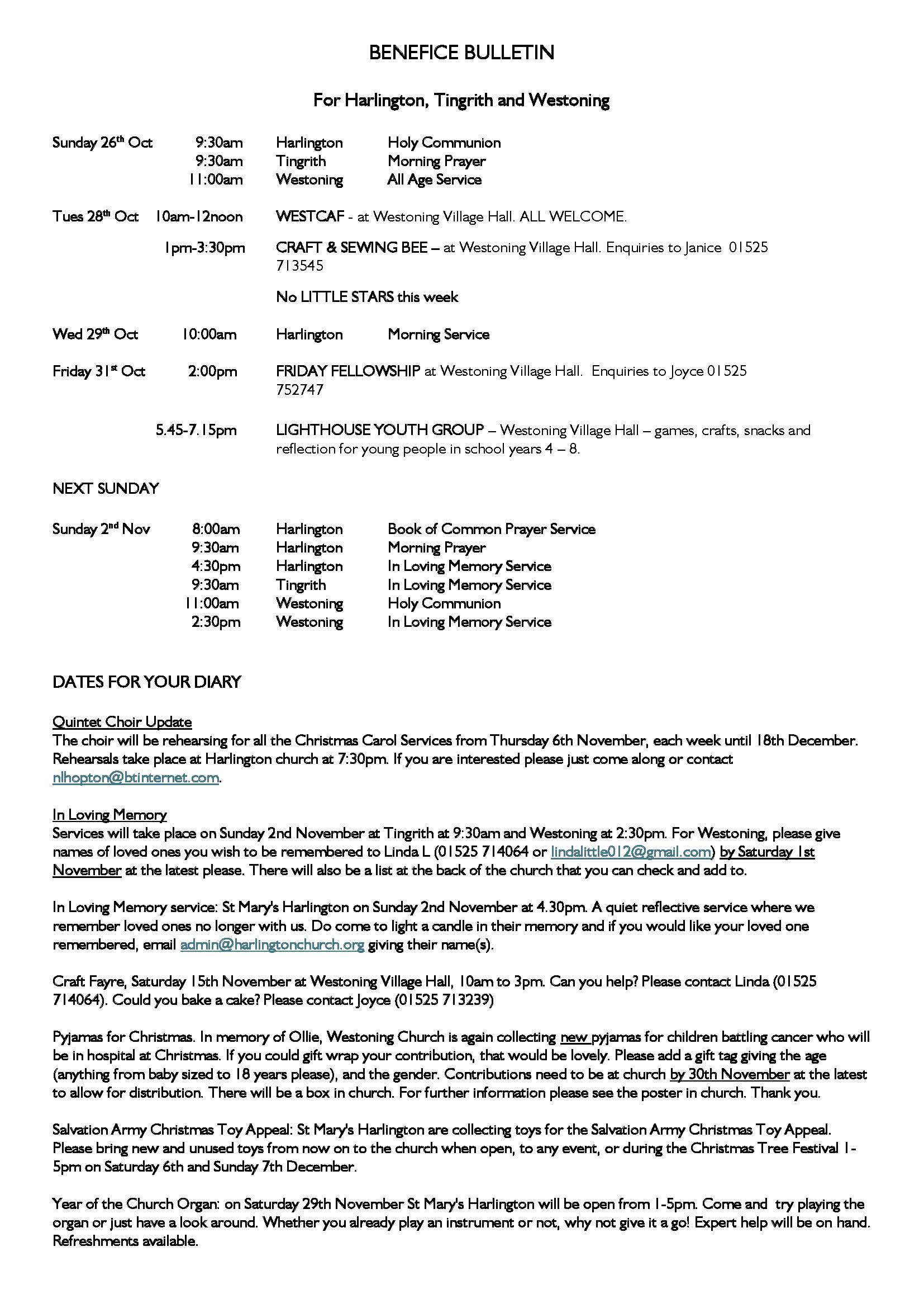 Weekly Update for Bible Sunday (26 October 2025)