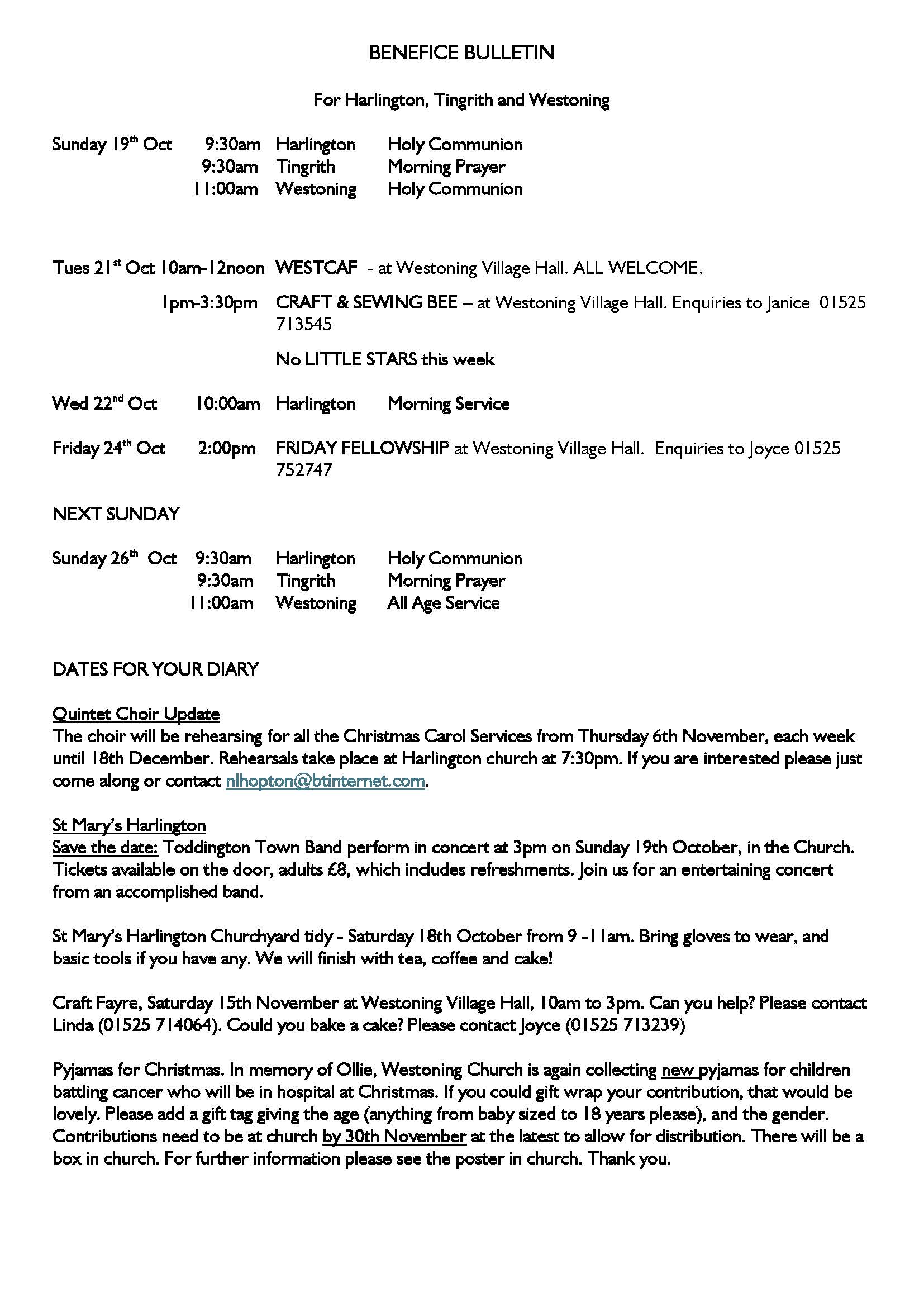 Weekly Update for the eighteenth Sunday after Trinity (19 October 2025)