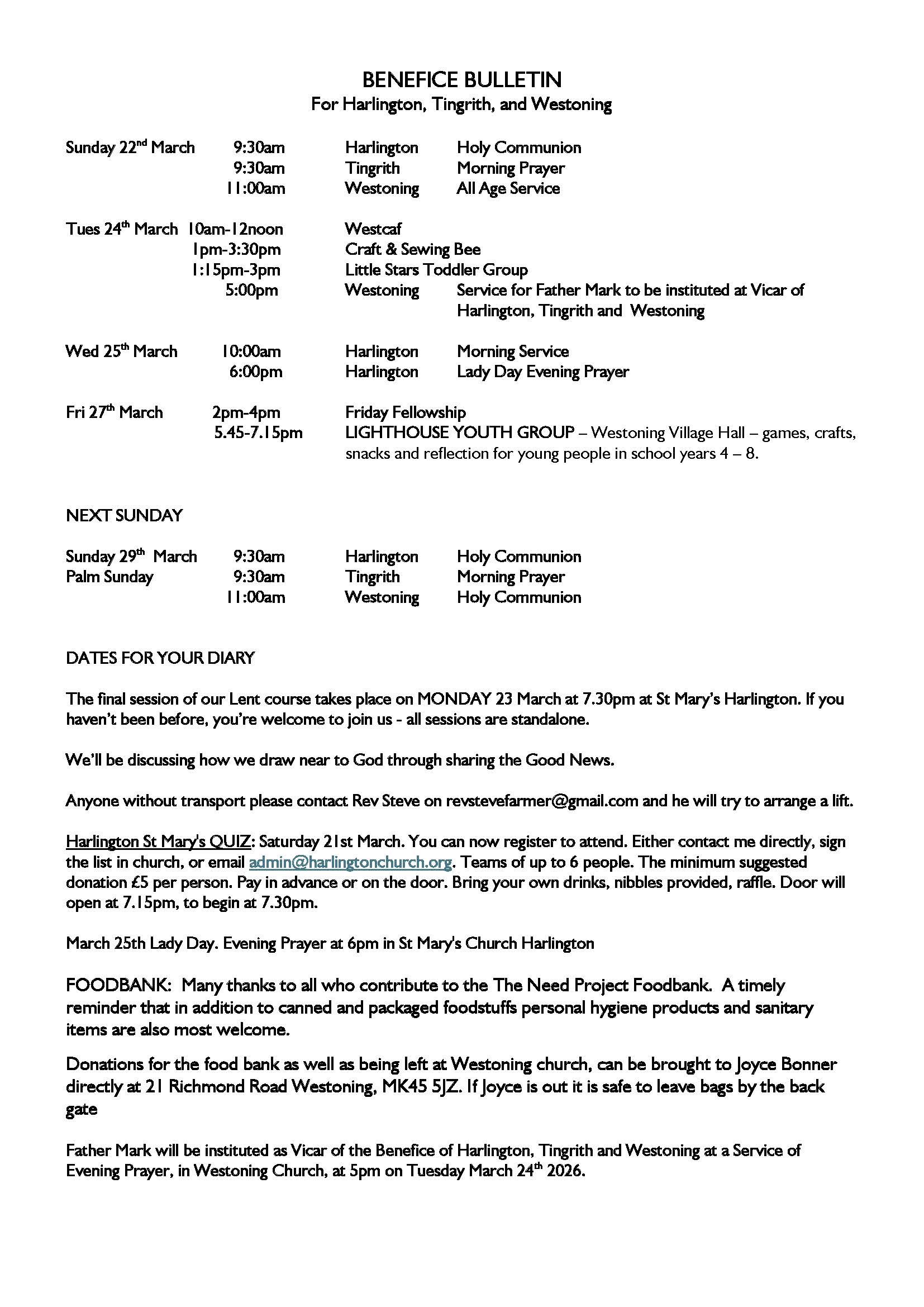 Weekly Update for the Fifth Sunday of Lent (22 March 2026)